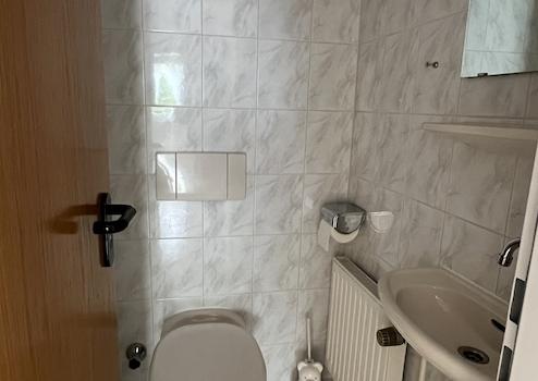 Vom Eingang aus direkt links befindet sich ein innenliegendes Gäste WC.