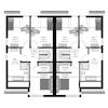 Dieser repräsentative Doppelhausentwurf mit Satteldach zeichnet sich durch seine besondere Gestaltung aus, die einen Zwerchgiebel mit Flachdach und einen Erker mit Flachdach einschließt. Das Highlight dieses Hauses ist zweifellos die Küche, die sich an der Vorderseite des Gebäudes befindet. Sie bietet nicht nur Fenster, die einen Blick in zwei Richtungen ermöglichen, sondern auch genügend Platz für einen Kochtisch in der Mitte. Die großzügige Fläche von 16 m² macht die Küche zu einem Ort, an dem man gerne Zeit verbringt, und das Übereckfenster sorgt dafür, dass Sie das Leben auf der Straße im Auge behalten können. Ein praktischer Hauswirtschafts- oder Haustechnikraum schließt sich nahtlos an die Küche an.