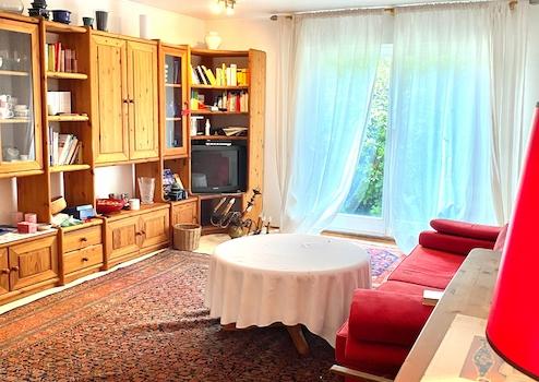Geradeaus befindet sich ein großer Raum, welcher derzeit als Schlafzimmer genutzt wird, aber ebenso gut als Arbeitszimmer umzufunktionieren ist. Eine Tür weiter befindet sich Ihr gemütlicher Wohnbereich mit Zugang auf den Balkon. Der Balkon bietet Ihnen einen ruhigen Rückzugsort mit Blick in den Garten.