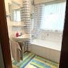 Das Badezimmer ist ausgestattet mit einer Badewanne, einem WC und einem Waschbecken.