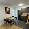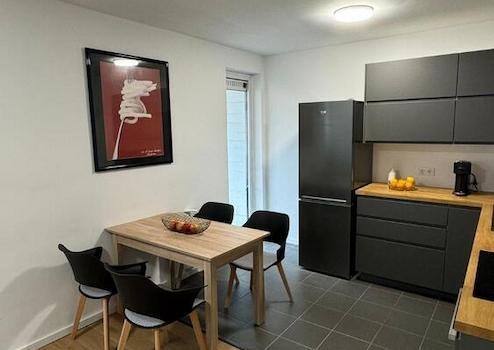 Entspannen Sie im Wohnbereich auf dem gemütlichen Sofa vor dem Fernseher oder genießen Sie gemeinsame Mahlzeiten am großen Esstisch. Der Balkon lädt mit seiner Loungeecke und einem Tisch mit 2 Stühlen zum Verweilen ein - ideal für sonnige Tage und laue Abende.