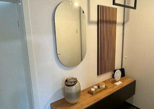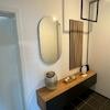 Der großzügige Eingangsbereich begrüßt Sie mit einer schönen Garderobe und einem Spiegel, ideal für einen letzten prüfenden Blick, bevor Sie das Haus verlassen. Im Abstellraum finden Sie die Waschmaschine und Regale, die zusätzlichen Stauraum schaffen und die Wohnung komplettieren.