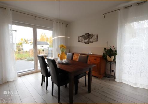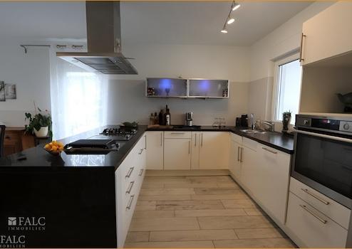 Im Erdgeschoss eröffnet sich Ihnen eine wunderschöne, moderne und großzügig offen gestaltete Küche mit integrierter Kochinsel, die mit dem geschmackvollen Esszimmer verschmilzt. Ein wunderbarer Raum, der sich ideal für Familienessen und gesellige Zusammenkünfte eignet.