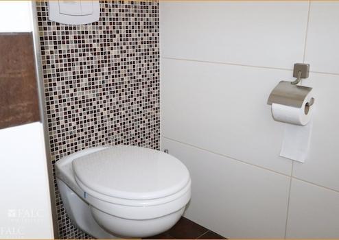 Das Badezimmer im Obergeschoss dieses bezaubernden Hauses ist zweifellos ein Schatz, der Sie mit seiner Eleganz und Funktionalität verzaubern wird. Hier verschmelzen Stil und Luxus zu einer harmonischen Einheit, die Ihnen ein außergewöhnliches Badeerlebnis schenkt.