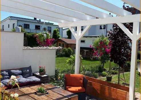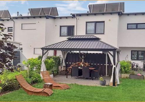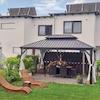 Die Terrassenüberdachung mit Sonnensegel dient als Schutz vor Sonnenstrahlen welches an sonnigen Tagen Schatten und an klaren Nächten den Blick auf den funkelnden Sternenhimmel ermöglicht. Ein freistehender Pavillon mit einer Fläche von 5,5 x 4 Metern eignet sich perfekt für gesellige Treffen im Freien, sei es zum Grillen, Entspannen oder für gemütliche Abende mit Freunden und Familie.
