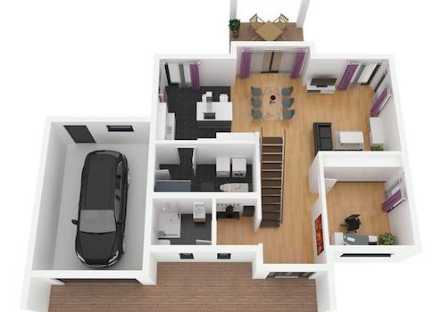 Das Fertighaus Köln bietet durch die offene Gestaltung mit einer Galerie, ein exklusives Wohnraumgefühl mit viel Platz für die ganze Familie. Im Erdgeschoss des Energiesparhauses befindet sich der offen gestaltete Wohn-/Essbereich mit Küche, ein Arbeitszimmer, ein Duschbad und ein Hauswirtschafts-/und Technikraum. Der Haustechnikraum ist direkt neben der Garage angesiedelt und kann auch durch die Garage betreten werden. Das bietet im täglichen Ablauf viele Vorteile, denn die Einkäufe oder z. B. schmutzige Sportbekleidung können gleich im Hauswirtschafts- und Technikraum verbleiben. Beim Hauseingang ist ein separater Bereich für die Garderobe vorgesehen. Sechs große Terrassentüren öffnen den Wohnbereich zur überdachten Terrasse und zum Garten hin.