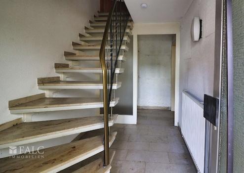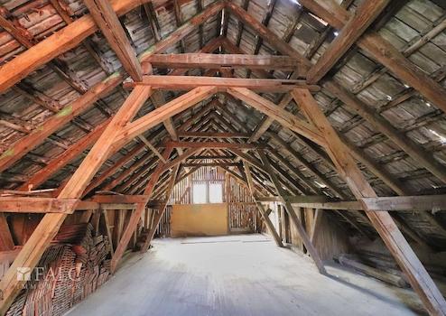 - Wohnbereich im Ober- und Dachgeschoss (ca. 169 m², renovierungsbedürftig) mit 6 Zimmern (davon ein schönes offenes Wohnzimmer mit Kamin im Dachgeschoss), eine offene Küche, Bad und Flur sowie Zugang zum Garten über den Balkon.