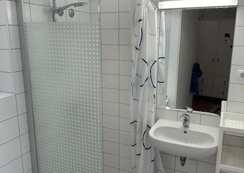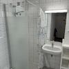 Das Badezimmer ist mit einer bodentiefen Dusche ausgestattet, die nicht nur stilvoll, sondern auch funktional ist.