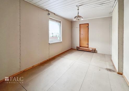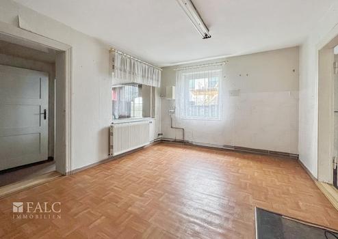 Im Erdgeschoss des Hauses befindet sich das Wohnzimmer, eine große Küche, ein Zimmer, der Flur sowie das Bad des Hauses. Das Obergeschoss ist aktuell in zwei Bereiche aufgeteilt. Hier befinden sich drei weitere Zimmer. Die Immobilie ist teilunterkellert im Bereich der Küche, mit einem Luftschutzkeller welcher als Versorgungskeller dient.