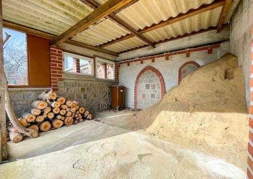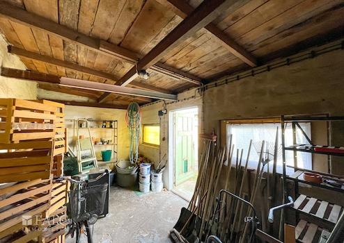 Im großzügigen Innenhof befindet sich eine Doppelgarage, eine Werkstatt und ein Schuppen. Eine überdachte Grill-Terrasse rundet den großen Hof ab. Hier lassen sich schöne Feiern mit Freunden und Familie verbringen und die Kinder haben im Innenhof viel Platz zum Spielen und Toben. Der Garten mit den Obstbäumen ist durch ein Tor vom Innenhof getrennt. Hier befinden sich Apfel-, Birnen- sowie ein Zwetschgenbaum und lässt das Herz eines jeden Selbstversorgers höher schlagen. Hier ist genügend Platz, um sein eigenes Gemüse für die Familie anzubauen. Auch ein gemauerter Hühnerstall muss nur noch mit neuem Leben gefüllt werden und integriert sich im Selbstversorgergarten.