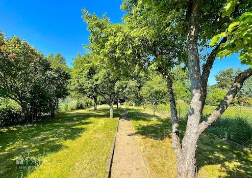 Diese Doppelhaushälfte wurde ca. 1934, auf einem ca. 1.002 m² großen Grundstück, massiv erbaut, und im Laufe der Jahre, immer wieder erneuert, verändert, angepasst, und um diverse Anbauten erweitert. Die gesamte Wohnfläche beträgt ca. 108,98 m², und verteilt sich auf ca. 70 m² im Erdgeschoß, sowie ca. 38,98 m² im ausgebauten Dachgeschoß. Darüber hinaus gibt es einen Abstellraum, 2 Abseiten im ausgebauten Dachgeschoß, und einen Keller ca. 25,6 m², welcher unterhalb der Küche ausgebaut ist. Die Raumaufteilung im Haupthaus ist derzeit ein Eingangsbereich ca. 10,93 m², eine Küche ca. 13,52 m², ein Wohnzimmer mit Kachelofen ca. 20,25 m², ein Zimmer ca. 10,21 m², ein Flurbereich mit Aufgang zum ausgebauten Dachgeschoß im Vorderhaus ca. 3,5 m², ein Flur im Hinterhaus ca. 1,66 m², mit Zugang zu den Zimmern im ausgebauten Dachgeschoß, und Badezimmer ca. 9,92 m² mit Abstellraum. Das ausgebaute Dachgeschoß umfasst im Vorderhaus einen Flur, ein Zimmer mit Anschluß für einen Kachelofen ca. 13,62 m², einer Abseite und Zugang zum Spitzboden. Im Hinterhaus gibt es ein Zimmer im Mittelbereich ca. 14,14 m², mit Zugang zu einer Abseite, und ein Zimmer mit ca. 11,22 m². Der Anbau an das Haupthaus hat eine Fläche von ca. 30,56 m², er wurde 1954 erbaut, und ist aufgeteilt in 3 Bereiche. Der vordere Teil, in dem 2019 ein neuer Gasanschluß eingebracht wurde, der mittlere Bereich, der derzeit als Lagerschuppen dient, und einen hinteren Bereich, in dem z. B. Platz für einen Anhänger ist. 1960 wurde ein Anbau als Garage erbaut, welcher heute als Werkstatt mit ca. 21,44 m² dient, und über einen Anbau einer überdachten Grill-Terrasse verfügt. Auf dem hinteren Bereich des Innenhofs wurde 1978 eine Doppelgarage mit ca. 25 m² erbaut. An der Garage vorbei gelangt man in den Garten des Grundstücks, welcher ca. 48,85 m lang und 10,70 m breit ist. Die Fenster wurden größtenteils Mitte der 90er - 2001, mit 2-fach verglasten Kunststoff-Fenstern erneuert. Im Wohnzimmer haben die Fenster Roll-Läden. Das Dach wurde Mitte der 90er Jahre neu gedeckt. 2024 wurde die Außenfassade neu gestrichen. Das gesamte Grundstück ist eingezäunt. Die damalige Klärgrube wird heute als Zisterne genutzt, um das Regenwasser aufzufangen, und dient im Sommer der Gartenbewässerung. Die Anschlüsse an das öffentliche Wasser/Abwassernetz und der Gas-Anschluß wurden 2019 erneuert. Die Gastherme ist von Vaillant, Baujahr 1996. Im Sommer 2020 hat die Telekom einen Glasfaserbreitbandanschluss installiert, und im Zuge dieser Baumaßnahme wurde der komplette elektrische Hausanschluss, durch den zuständigen Energieversorger, erneuert.
