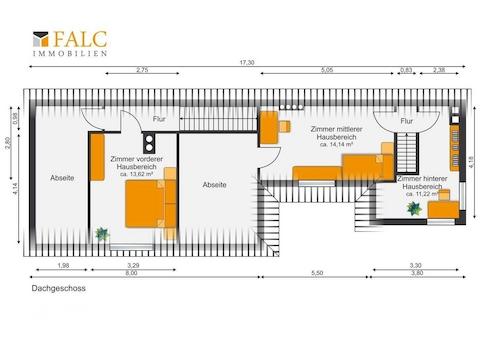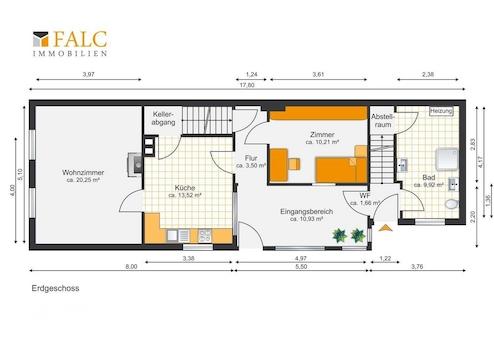 Die gesamte Wohnfläche beträgt ca. 109 m², die Anbauten haben eine Nutzfläche von ca. 112 m², das Grundstück hat eine Größe von ca. 1.002 m², wovon der Garten eine Größe von ca. 522 m² hat.