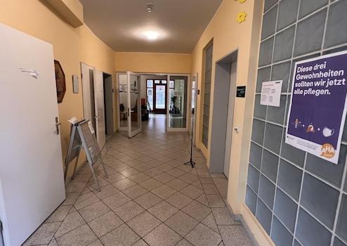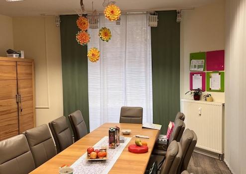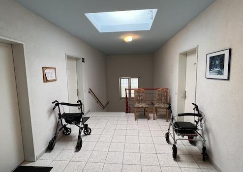 - Mittagessen in der im Erdgeschoss vorhandenen Begegnungsstätte oder auf Wunsch im eigenen Appartement.