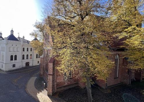 Direkt gegenüberliegend befindet sich eine der zwei Kirchen Wittenburg's. Direkt vor dem Haus und gegenüber der Straße befinden sich Bushaltestellen.