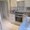 Einbauküche, komplett ausgestattet mit Tisch und 2 Stühlen.