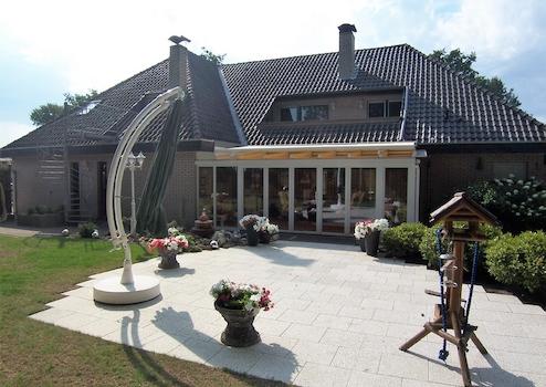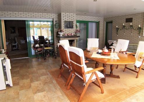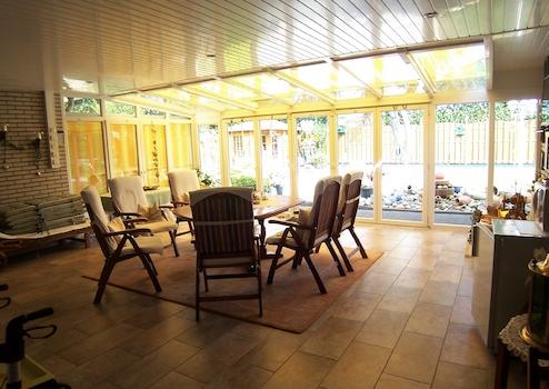 Vom Hauptschlafzimmer aus gelangt durch eine Glasschiebtür in den direkt angrenzenden Wintergarten.