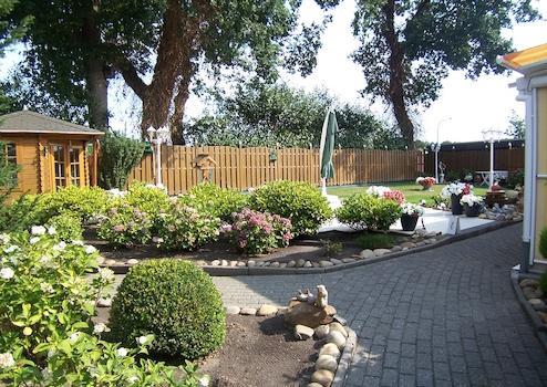 Toll angelegte Gartenanlage, komplett eingezäunt und uneinsehbar. Kleiner Wasserspiel an der Gartenterrasse, weitere Freisitzterrassen vorhanden. Das Grundstück wurde mit sehr viel Liebe zum Detail angelegt, dennoch pflegeleicht. Die Hoffläche wurde sehr großzügig bepflastertet. Kleiner Holz - Pavillon auf dem hinteren Grundstück im Kaufpreis enthalten.