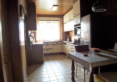 Die Einbauküche im Erdgeschoss ist im Kaufpreis enthalten. Angrenzend an dem Küchenbereich befinden sich ein Vorratsraum sowie ein Hauswirtschaftsraum mit direktem Zugang in die Garage.