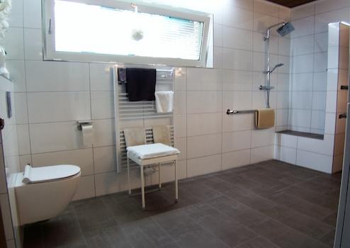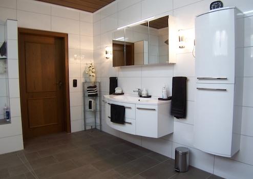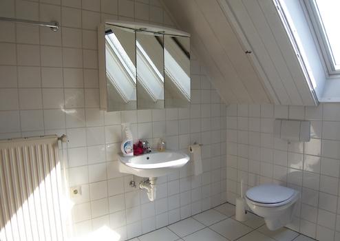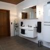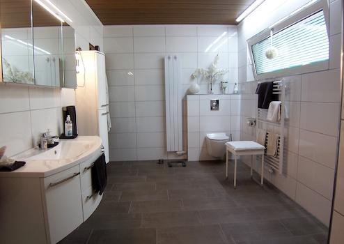 Es befinden sich drei Bäder sowie zwei Gäste WC´s im Objekt. das Badezimmer im Erdgeschoss wurde 2021 komplett modernisiert, bodentiefe Dusche, Waschtisch mit Spiegelschrank, Handtuchheizkörper, Hänge WC, deckenhohe und zeitlose Verfliesung. Das Bad im Dachgeschoss verfügt über eine Wanne, Dusche, WC, Waschbecken sowie über eine deckenhohe und ebenfalls zeitlose Verfliesung. Das weitere Duschbad im Dachgeschoss ist identisch ausgestattet.