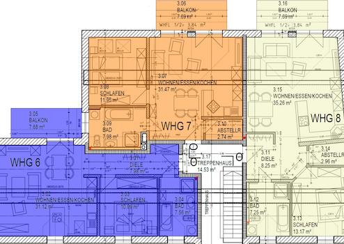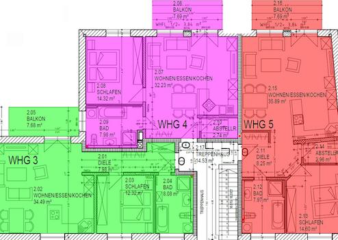 Insgesamt stehen acht Wohnungen zur Verfügung mit Wohnflächen zwischen 58 - 109 m². Davon sieben 2-Zimmer Wohnungen und im Erdgeschoss eine 4-Zimmer Wohnung.