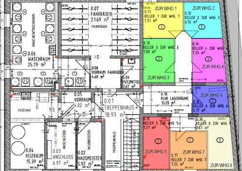 Insgesamt stehen in der Immobilie acht Wohnungen zur Verfügung mit Wohnflächen zwischen 58 - 109 m². Davon sieben 2-Zimmer Wohnungen und im Erdgeschoss eine 4-Zimmer Wohnung.