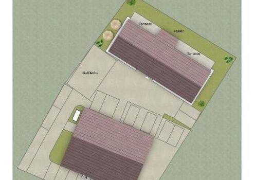 Der kleine Komplex besteht aus einem bestehenden Gebäude und einem separat zu errichtenden Gebäude im hinteren Teil des Grundstücks.