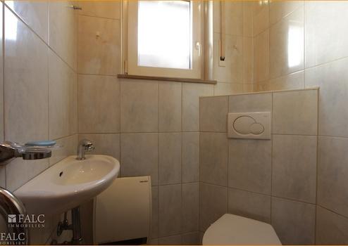 Das Gäste WC mit Fenster wurde modernisiert und ist zeitgemäß hell gefliest.