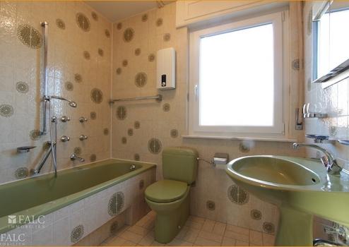 Ihr neues Zuhause wurde 1955 in massiver Bauweise erbaut und überzeugt auf drei Ebenen mit insgesamt sechs Zimmern, einem Familienbad mit Fenster, einem Gäste WC, zwei Küchen und zwei Räumen als Ausbaureserve für ein weiteres Bad und ein Gäste- oder Arbeitszimmer.