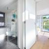 Das Badezimmer überzeugt mit einer bodengleichen Dusche, Badewanne, WC und Waschbecken der Marke Laufen.
