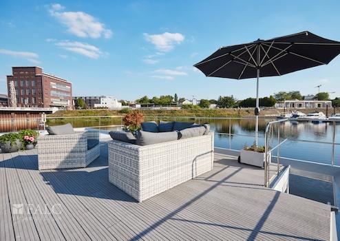 Ihr neues Hausboot befindet sich in der beliebten Marina Duisburg.