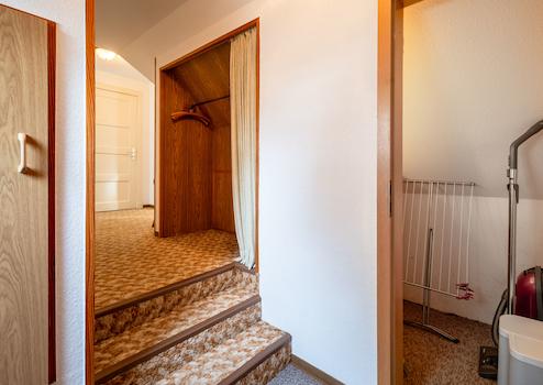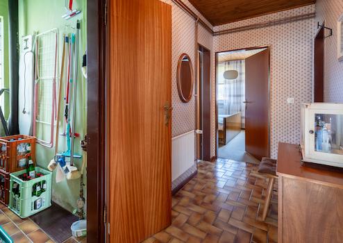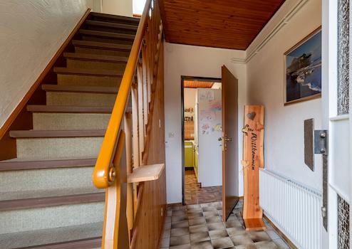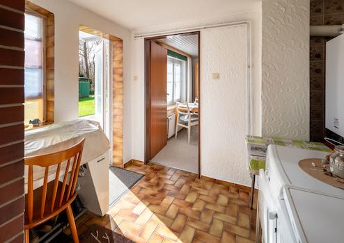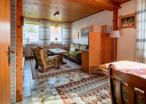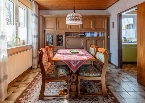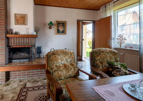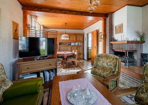 Das Haus wurde vermutlich um 1937 erbaut und im Laufe der Jahre erweitert. In den 80er Jahren hat man das Gebäude umfassend modernisiert. Die rund 143 m² Wohn-/Nutzfläche verteilen sich auf 2 Etagen, wobei eine getrennte Nutzung beider Etagen (Ferienwohnung, Mehrgenerationenwohnen, ...) flexibel möglich ist. Von der Eingangsdiele im EG geht es in den zentralen Küchenbereich, und von dort aus in das große Wohnzimmer mit offenem Kamin, ein geräumiges Schlafzimmer sowie den Flur mit Zugang zum Wannenbad und einem praktischen Abstellraum. Vom angrenzenden Hauswirtschaftsraum führt ein weiterer Zugang zu einem zweiten großen Zimmer (Schlafen, Kinder, Gäste oder Arbeiten) mit eigenem Duschbad. Außerdem ist der weiträumige Freisitz über den Hauswirtschaftsraum zugänglich. Die Treppe in der Eingangsdiele führt ins OG, wo sich insgesamt 3 geräumige Zimmer, ein Wannenbad, ein separates Gäste-WC, ein kleiner Küchenbereich sowie ein separater Abstellraum befinden. Von der Straße führen 2 Zufahrten zum Objekt: eine direkt zur angebauten Garage, die zweite Zufahrt führt zu weiteren Stellplätzen und zum Garten. Dieser punktet mit einem schönen alten Baumbestand und einer großzügigen Rasenfläche, optimal z.B. für Kinder zum Spielen oder für alle Bewohner zum Entspannen. Beheizt wird das Objekt mit Flüssiggas (Gasbrennwerttherme Bj. 2012, außenliegender Gastank). Der Anschluss an das bereits vorhandene Glasfasernetz ist möglich.