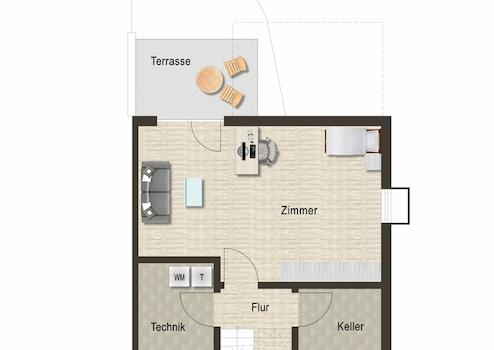 - ein großes Zimmer mit Zugang zur Terrasse
