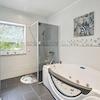 Mit dem Gang durch die Hauseingangstür stehen Sie direkt in einem geräumigen ca. 14 m² großen, hellen Flur, mit hochwertigen Fliesen. Dieser bietet bereits eine eingebaute Garderobe welche bei Verkauf im Haus verbleibt. Vom Flur aus haben Sie auf der rechten Seite Zugang zum Büro/Gästezimmer mit Klimaanlage, dem Hauptbad mit bodenebener Dusche, Whirlpool- Badewanne und neuen Armaturen sowie dem Hauswirtschaftsraum samt Gäste-WC.