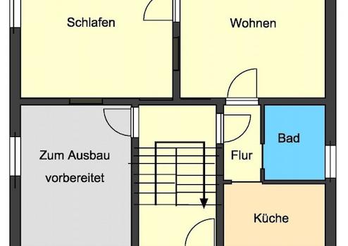 Das großzügige ausgebaute Dachgeschoss beherbergt das gemütliche Schlafzimmer und besticht durch seine urigen Holzbalken und Dachschrägen. Optional kann hier ein weiteres Badezimmer integriert werden.