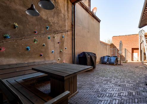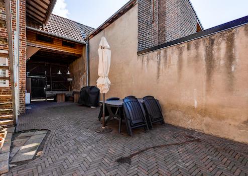 Vollständig umschlossener, geräumiger Innenhof mit Zierpflaster.