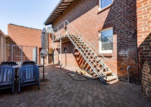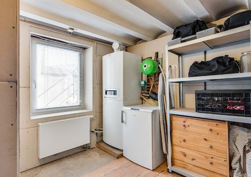Abstellraum (6,64 x 3,11 m) mit alter Dusche, Boiler und Zwischengeschoss. Dieser Abstellraum ist über eine Außentreppe über den Innenhof erreichbar.