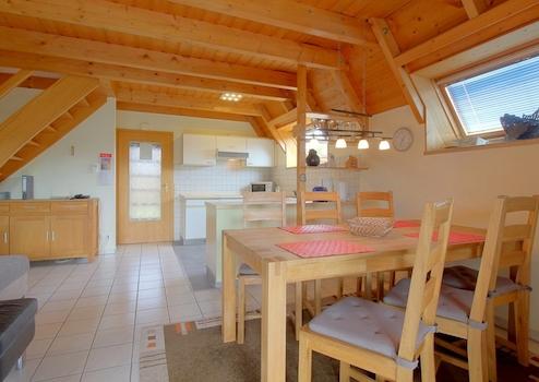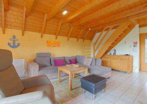 0465124 Das lichtdurchflutete Nurdachhaus wird mit kompletten Inventar verkauft. Das Ferienhaus besteht aus einem großzügigen Wohn-/Essbereich mit EBK, Eßtisch mit Stühlen sowie ein solider eingerichteter Wohnbereich. Ein Duschbad befindet sich im EG. Im OG befinden sich zwei Schlafzimmer und 1 WC. Terrasse und der großzügige Garten laden zum Verweilen ein.