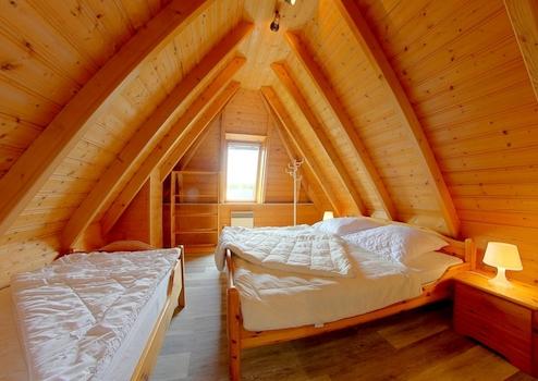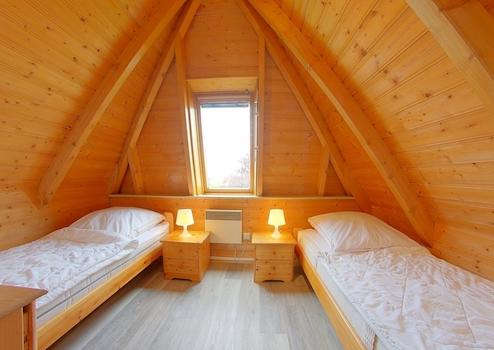 1 Schlafzimmer mit Fenster, Doppelbett und Einzelbett