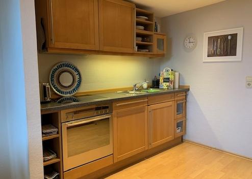 Einbauküche mit Koch-Ceranfeldern, Backofen, Kühlschrank mit separatem Gefrierfach, Mikrowelle,