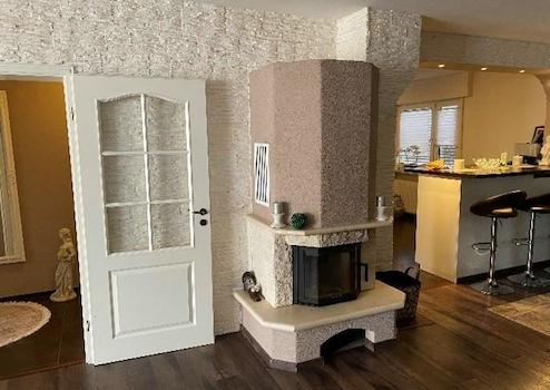 Gleich im Anschluss daran gelangen Sie in das Herzstück dieser Wohnung, das große Wohnzimmer mit seinem Kaminofen, der eine entspannte und anheimelnde Atmosphäre verbreitet. Von hier aus können Sie auch Ihre, mit Markise ausgestattete, Terrasse und den Außenbereich betreten. Vielleicht starten Sie diesen Sommer einfach mit einer Grillparty, an dem dafür bereits vorbereiteten Platz. Sie wollten schon immer einen Pool haben, einen Spielplatz für Ihre Kinder, Ihr eigenes Obst und Gemüse anbauen oder einen Garten mit Teich anlegen? Oder einfach nur den Sonnenuntergang nach einem anstrengenden Tag genießen? Dann ist hier genau der richtige Platz dafür.