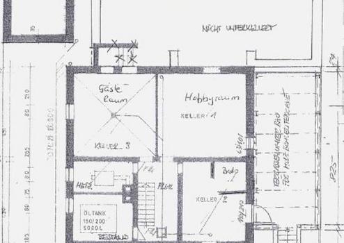 Nach Ihrem Ausflug ins Grüne, betreten Sie nun über die Terrasse, Ihr neues Schlafzimmer mit Treppe nach oben in das geräumige und über den ganzen Anbau laufende Ankleidezimmer. Gleich im Anschluss daran befindet sich das Kinderzimmer. Zurück im Eingangsbereich möchte ich Ihnen nun noch Ihr Gäste WC, Ihre Garderobe mit angeschlossenem Abstellraum und Ihr helles Tageslichtbad mit Badewanne zeigen. Nun gelangen Sie über die im Eingangsbereich angeschlossene Treppe in den Keller. Hier befinden sich ein zusätzliches Gästezimmer, ein Hobbyraum, ein Technikraum, ein Öllager und ein Lagerkeller.