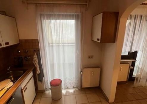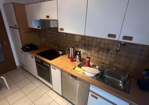 Die daneben liegende Küche samt Einbauküche hat ebenfalls einen Zugang zu dem geschützten Balkon.