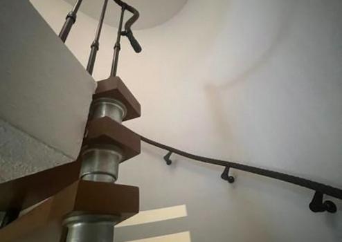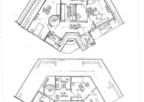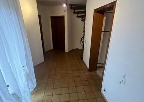 Der vor Ihnen liegende Flur ermöglicht den Zugang zu allen Räumen auf dieser Ebene und führt dann natürlich zu der Wendeltreppe zu zweiten Wohnebene.