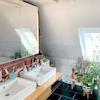 Neben einem großzügigen Badezimmer im Obergeschoss verfügt die Wohnung auch über ein Gäste-WC im Erdgeschoss.
