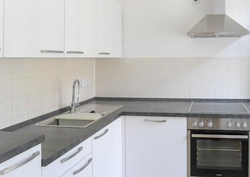 Die Wohnung ist mit Laminatboden ausgestattet, der nicht nur ästhetisch ansprechend ist, sondern auch leicht zu pflegen und strapazierfähig ist. Küche und Bad sind gefliest.