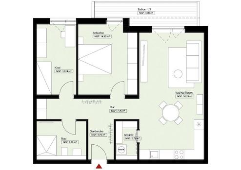 Inmitten dieses urbanen Gebietes entstehen für Sie insgesamt 22 Wohneinheiten auf höchstem Wohnniveau. Mit Größen zwischen ca. 60 m² und 120 m² und zwei bis vier Zimmern haben wir für jeden Bedarf die richtige Wohnung. Diese bestechen mit Ihrer sehr guten Ausstattung zu der beispielsweise elektrische Rollläden, Fußbodenheizung, 3-fach Verglasung. Alle Wohnungen verfügen ebenfalls über einen Balkon bzw. Terrasse.