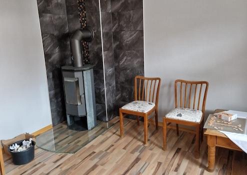 EIne Fußbodenheizung in einem der Bäder sorgt für wohlige Wärme im gesamten Haus, ebenso gleich 2 Kaminöfen.