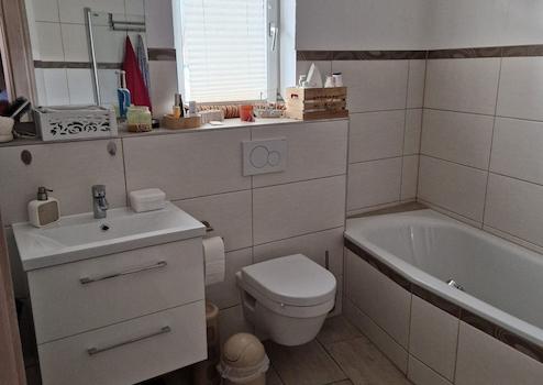 Die Bodenbeläge im Haus bestehen aus Fliesen, Laminat und Parkett, die nicht nur pflegeleicht sind, sondern auch ein angenehmes Wohngefühl vermitteln.