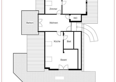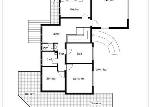 (davon ein Durchgangszimmer), Eingang über den Wohnhof mit Außenwendeltreppe