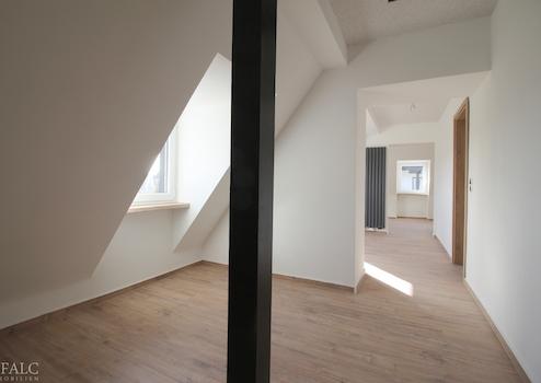 Über die aufgearbeitete rustikale Holztreppe gelangen Sie in das Dachgeschoss. Hier befinden sich zwei weitere Schlafzimmer sowie ein zweites Tageslicht-Badezimmer, ebenfalls mit Dusche, Waschtisch und WC. Das offene Raumkonzept lässt die Einrichtung einer zweiten Küche zu. Alternativ kann dieser Raum aber auch als offenes Büro, Kinderspielzimmer, Hobbyraum o.ä. dienen.